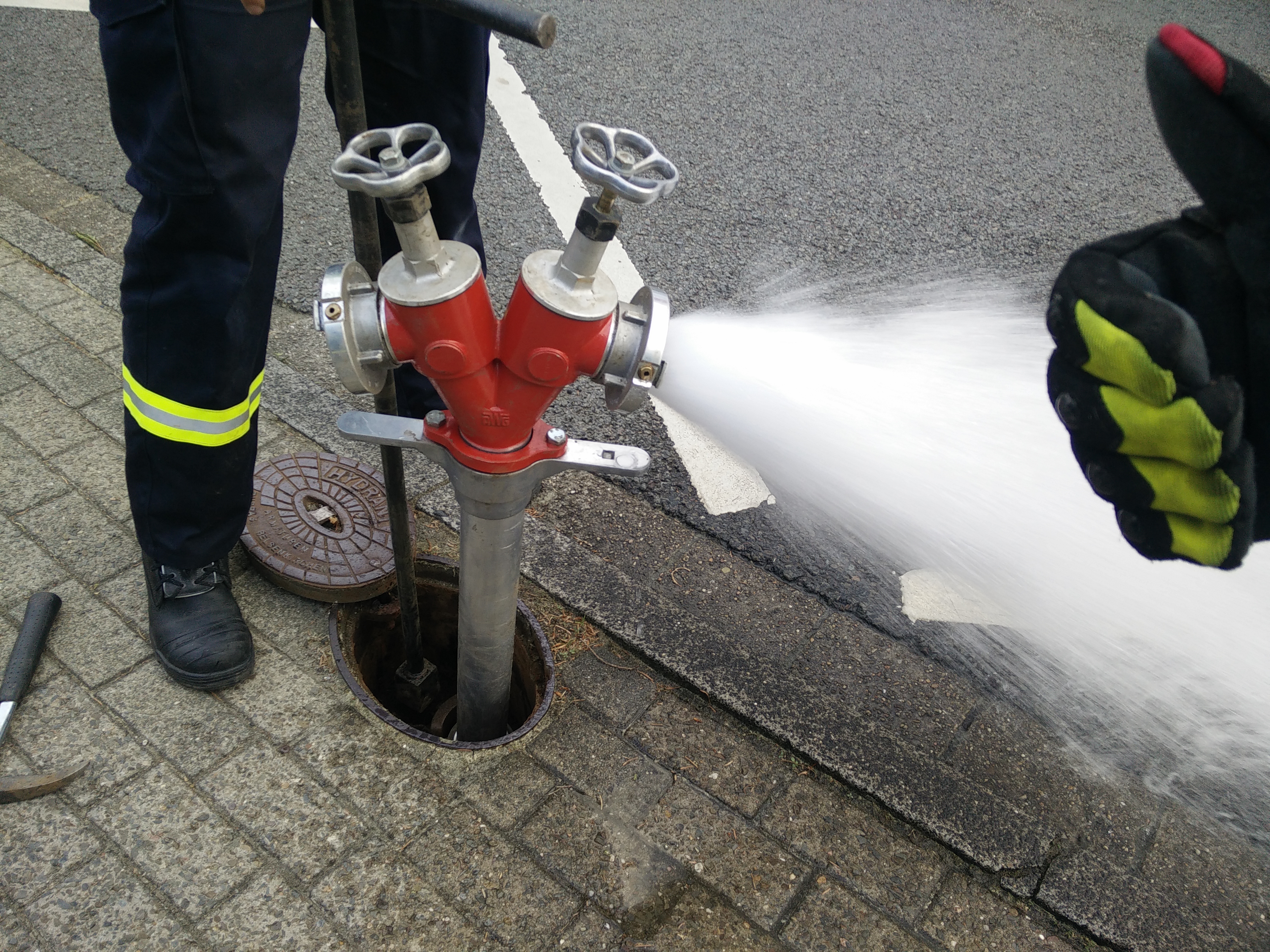 Hydrantenkontrolle mit anschließender spontaner Einsatzübung eines Dachbrandes nach FwDV 3 und 7.